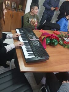 Με συνοδεία μουσικών οργάνων το γραφείο Δημάρχου γέμισε μελωδίες και παιδικές φωνές, οι μαθητές κεράστηκαν παραδοσιακά χριστουγεννιάτικα εδέσματα και αντάλλαξαν ευχές με τον Δήμαρχο Θηβαίων, κ. Γιώργο Αναστασίου και τον Γενικό Γραμματέα, κ. Γιώργο Παπασπύρου. Ακολούθησε συζήτηση με τους μαθητές και τους δασκάλους ενώ φωτογραφηθήκαν όλοι μαζί κάτω από το χριστουγεννιάτικο δέντρο.