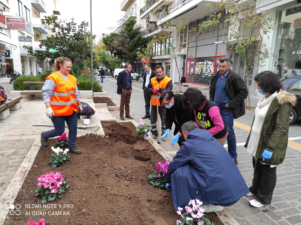 Δήμος Θηβαίων: Φύτευση λουλουδιών στον κεντρικό πεζόδρομο της Θήβας
