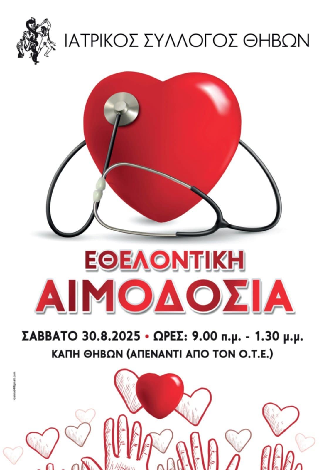 Εθελοντική Αιμοδοσία – Σάββατο 30.08.2025 9.00 – 13.00 στο ΚΑΠΗ Θηβών