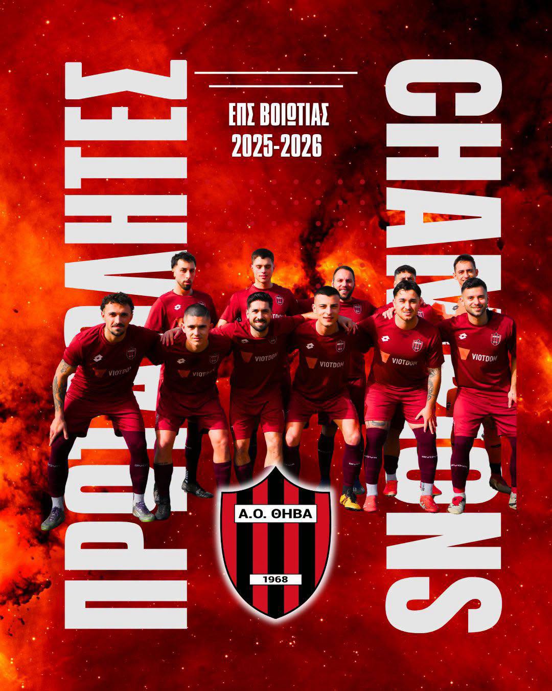 Kοινότητα Θήβας, Νεα, Νέα – Ανακοινώσεις, Τα Νέα του Δήμου, Τα Νέα των Συλλόγων Συγχαρητήρια Επιστολή Δημάρχου Θηβαίων στον ΑΟ Θήβας για την κατάκτηση Πρωταθλήματος Α’Κατηγορίας Βοιωτίας και εξασφάλιση ανόδου του στην Γ’ Εθνική Posted by dimosthivas 21/04/2026 On 21/04/2026 ΣΥΓΧΑΡΗΤΗΡΙΑ ΕΠΙΣΤΟΛΗ ΠΡΟΣ ΑΟ ΘΗΒΑΣ