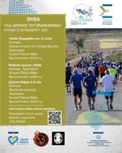 Την Κυριακή 21 Σεπτεμβρίου θα διεξαχθεί ο αγώνας: Sterea Run – 17ος Δρόμος του Επαμεινώνδα στη Θήβα.