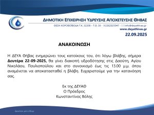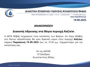 Πρόσκληση σύγκλησης Δημοτικού Συμβουλίου Τετάρτη, 24/9/2025 18:30 μ.μ.