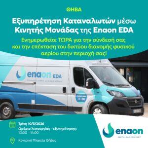 Το φυσικό αέριο έφτασε στη Θήβα : κινητή μονάδα εξυπηρέτησης καταναλωτών – Τρίτη 10/3/2026 , 10:00 – 14:00 στην Κεντρική Πλατεία Θήβας