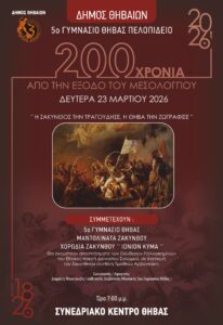 Δευτέρα 16 Μαρτίου 2026 | Συνεδριακό Κέντρο Δήμου Θηβαίων “Αλέξανδρος Κοφίνης”