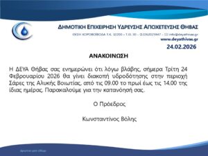 Σας ανακοινώνουμε ότι στις 10, 11, 12, 13 και 16 Μαρτίου 2026 από 09:00 έως 18:30 θα εκτελεστούν βολές τυφεκίων ευθυτενούς τροχιάς στο ...