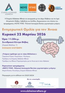Ενημερωτική Ομιλία για την Άνοια στη Θήβα «Υπάρχει πρόληψη για την νόσο Alzheimer;»