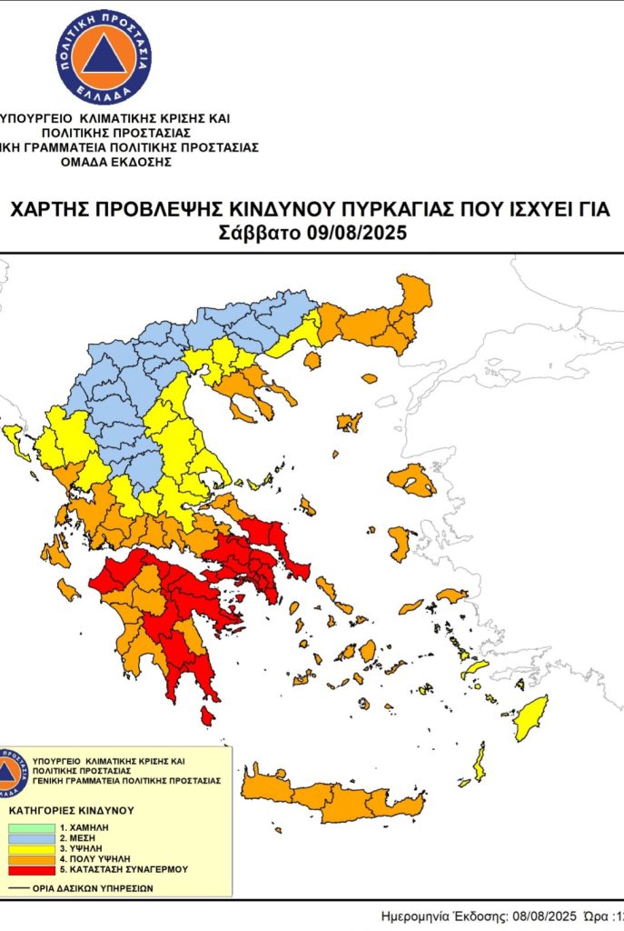 Απαγόρευση κυκλοφορίας στα δασικά οικοσυστήματα – Πολύ Υψηλός Κίνδυνος Πυρκαγιάς (κατηγορία 4) για Τρίτη 12 Αυγούστου 2025