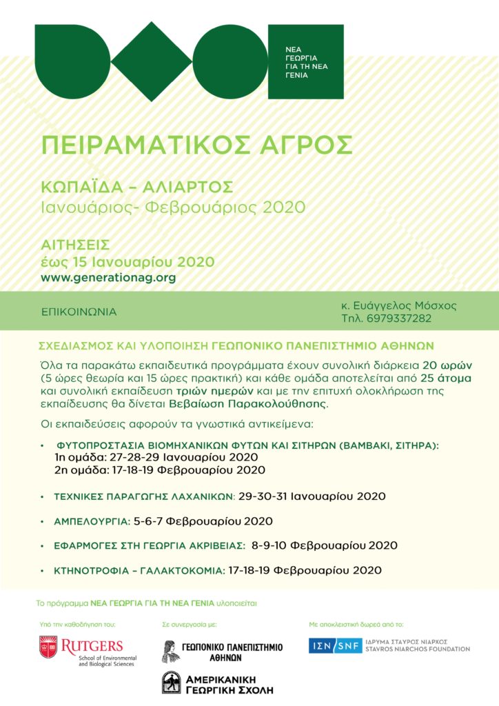Προγράμματα κατάρτισης στον Πειραματικό Αγρό στην Αλίαρτο Βοιωτίας στο πλαίσιο του προγράμματος «Νέα Γεωργία για τη Νέα Γενιά»