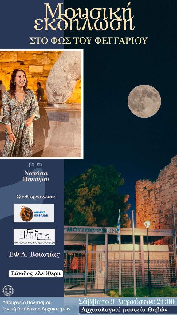 🌛🌝🌜Μουσική εκδήλωση με τη Νατάσα Πανάγου στο Αρχαιολογικό Μουσείο της Θήβας το Σάββατο 9 Αυγούστου 2025 στις 21...