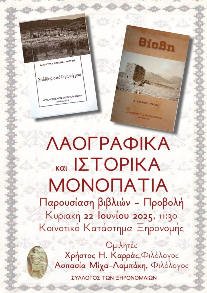 Συλλόγου Ξηρονομαίων : Πρόσκληση Παρουσίασης Βιβλίων