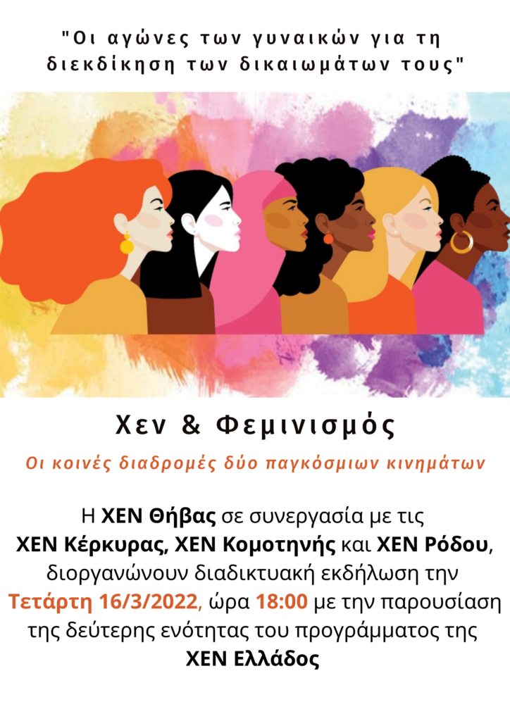 Η ΧΕΝ Θήβας, σε συνεργασία με τις ΧΕΝ Κέρκυρας, ΧΕΝ Κομοτηνής και ΧΕΝ Ρόδου θα πραγματοποιήσουν διαδικτυακή εκδήλωση στις 16/03/2022 ημ...