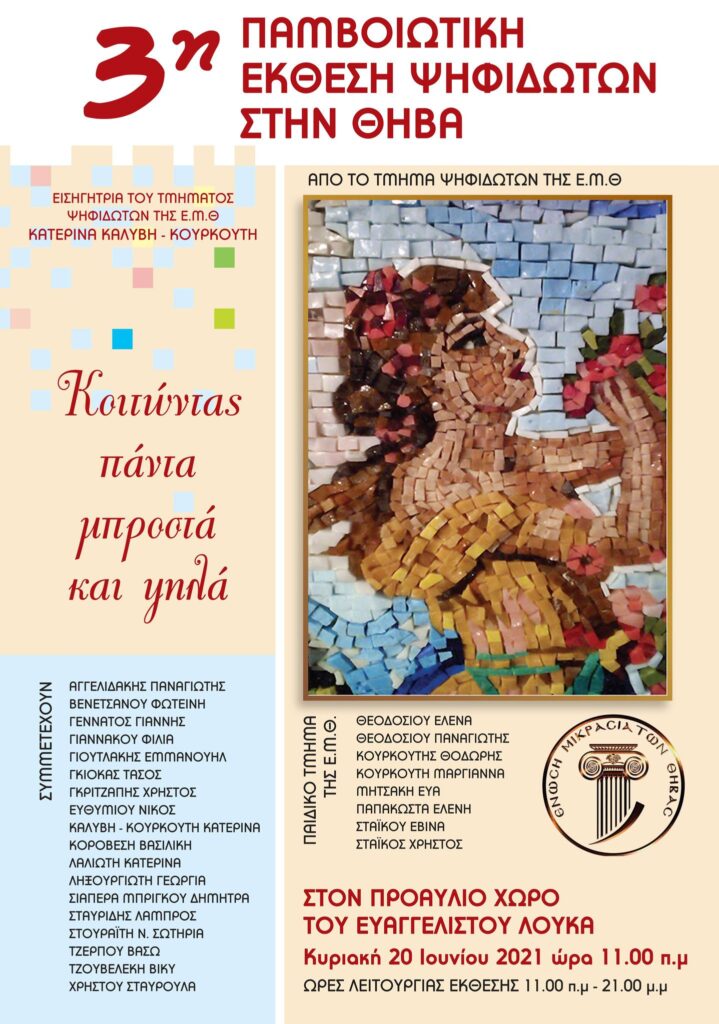Η Ένωση Μικρασιατών Θήβας διοργανώνει την 3η Παμβοιωτική Έκθεση Ψηφιδωτών στην Θήβα με την συμμετοχή 26 καλλιτεχνών (παιδιών ...