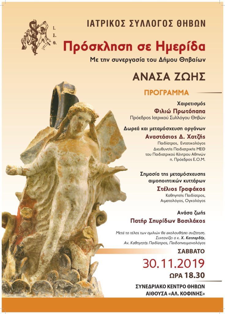 Το Σάββατο 30/11/2019 στο Συνεδριακό Κέντρο της Θήβας πραγματοποιήθηκε ημερίδα του Ιατρικού Συλλόγου Θηβών με θέμα «Ανάσα Ζωής». Ο Ιατρ...