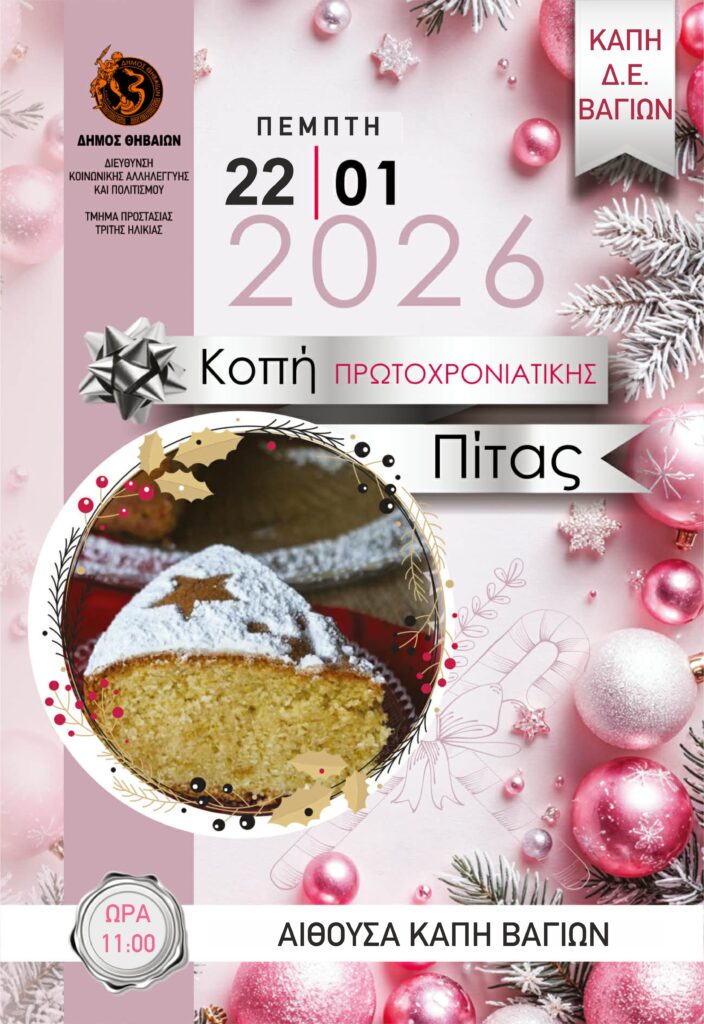 Την Πέμπτη 22 Ιανουαρίου 2026 και ώρα 11:00 π.μ., στην αίθουσα του Δημοτικού Συμβουλίου του Δήμου Θηβαίων, η «ΕΛΙΚΩΝΑΣ – ΠΑΡΝΑΣΣΟΣ Αναπ...