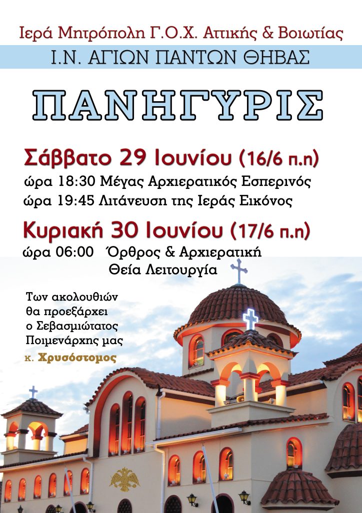 Θα θέλαμε να σας ενημερώσουμε ότι λόγω του αδόκητου χαμού ενός νέου ανθρώπου και φίλου σε όλη τη θηβαϊκή κοινωνία και όχι μόνο, η προγ...