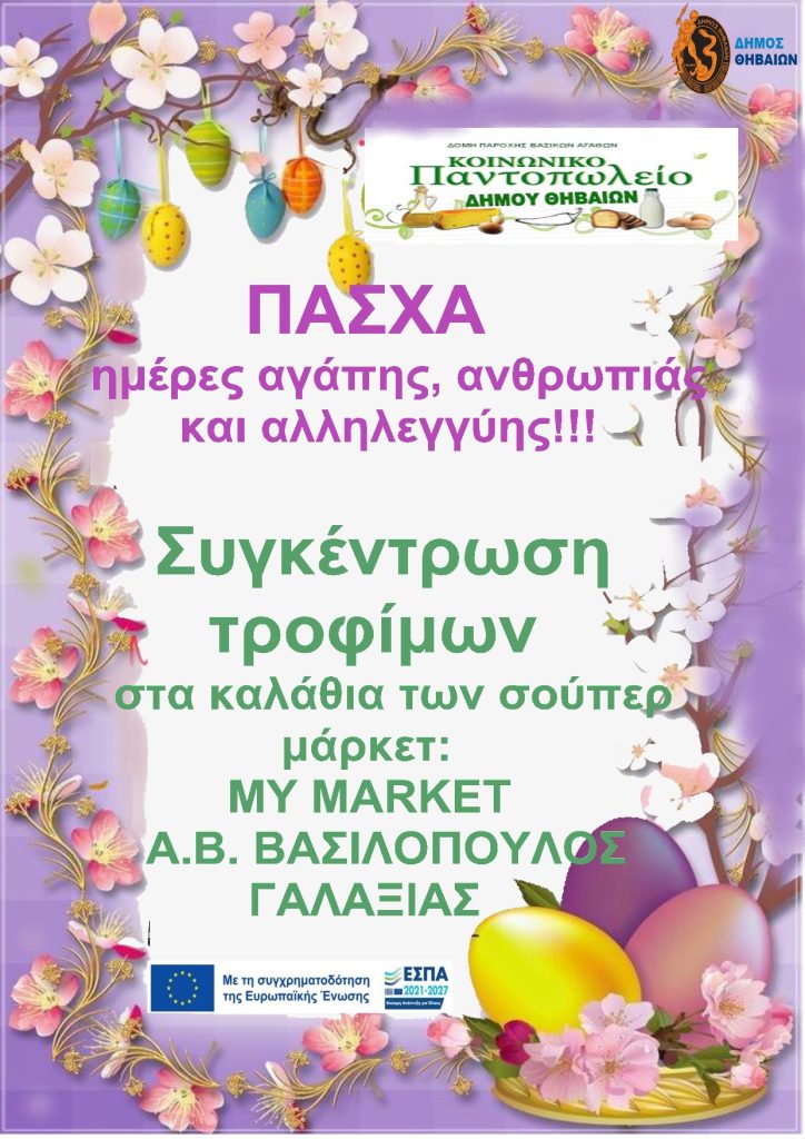 Και φέτος το Πάσχα ενισχύουμε τα καλάθια του Κοινωνικού Παντοπωλείου