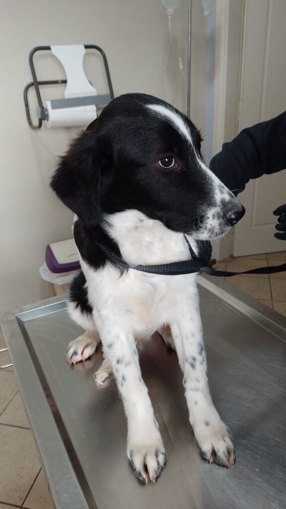 Το ασπρόμαυρο κουτάβι είναι αρσενικό, εμβολιασμέ...