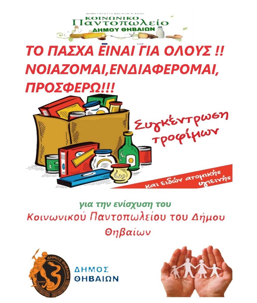 Κοινωνικό Παντοπωλείο Δήμου Θηβαίων: Και αυτό το Πάσχα τους κάνουμε το τραπέζι!