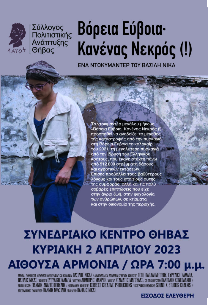 Βόρεια Εύβοια· Κανένας Νεκρός (!)- Το ντοκιμαντέρ του Βασίλη Νίκα, 2/4/2023, 7μ.μ. στο Συνεδριακό Κέντρο Θήβας