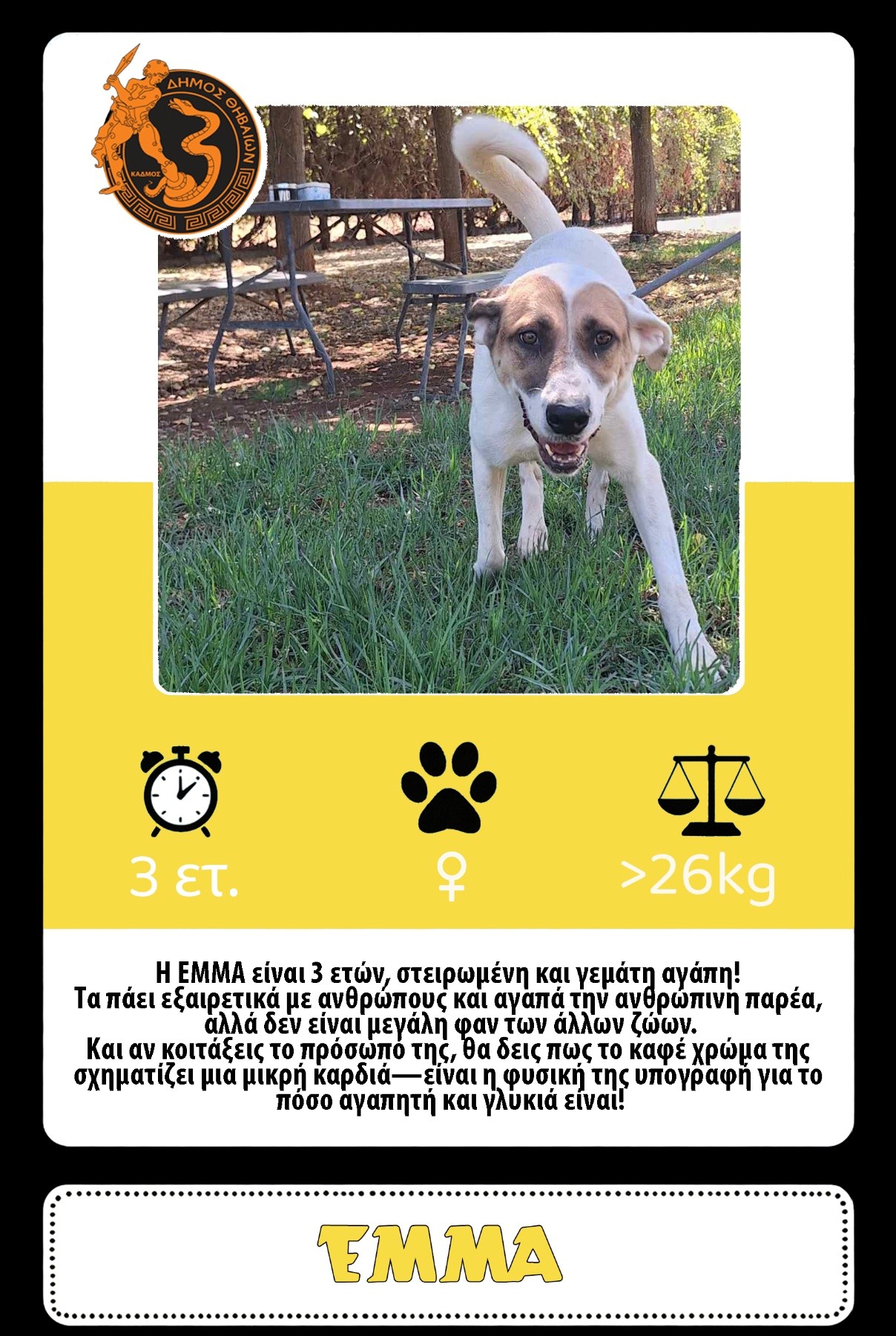 Η ΕΜΜΑ είναι 3 ετών, στειρωμένη και γεμάτη αγάπη!